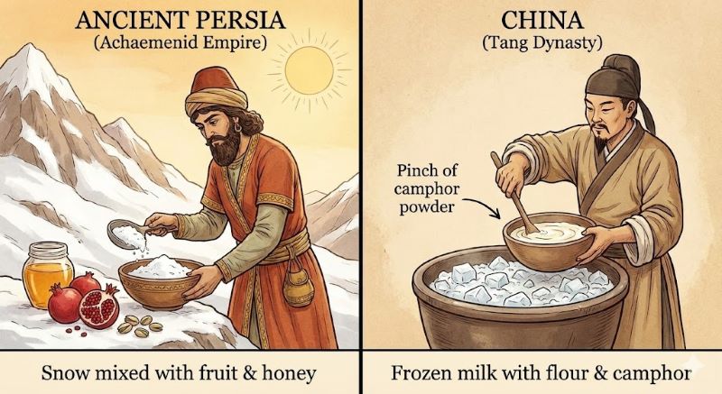 También en la Edad Media surgieron los primeros antecedentes de los postres congelados. La realeza solicitaba hielo mezclado con miel o jarabes de frutas, creando versiones primitivas de lo que hoy conocemos como helados. Estas preparaciones no solo eran refrescantes, sino también un reflejo de lujo y exclusividad.